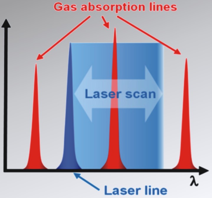 通過調(diào)制可調(diào)節(jié)激光器的電流,可以掃描氣體的整個吸收峰,得到氣體吸收單線吸收光譜數(shù)據(jù),由此可以分析氣體的濃度。吸收光譜的單線特性可以避免背景氣體組分對被測氣體的交叉吸收干擾,保證測量的準(zhǔn)確性。